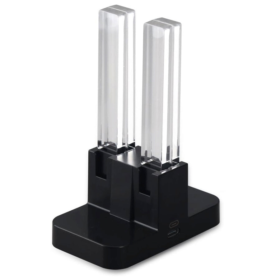 Colourful acrylic light beams, the light is red when Joy-Con is charging, it turns green when fully charged.